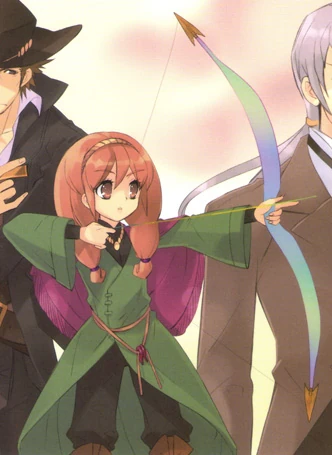 Chiara Toscana (キアラ・トスカナ Kiara Tosukana) is the successor of the title "Archer of Aurora" (極光の射手 Kyokkō no Ite) and its previous holder, Karl Berwald. She is a young girl who holds a contract with a Crimson Lord with two personalities named Outreniaia and Vetcherniaia, "Forerunner of Daybreak" and "Successor of Twilight", respectively. Her choice of Divine Vessels is also arrowheads, like Karl's, but she prefers to use it as hair accessories instead. In the battle, the arrowheads become the tips of the aurora-colored bow which is used to shoot the signature Unrestricted Spells of "Archer of Aurora": Gripen's Howl and Draken's Roar.
