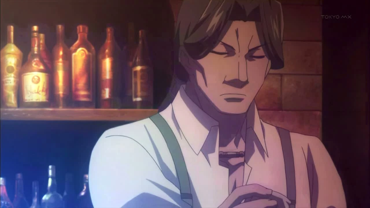 Eastedge cleans glasses at his Outlaw before sensing the Faint Heaven Quake, a cataclysm caused by the awakening of the Snake of the Festival's true body.[5]