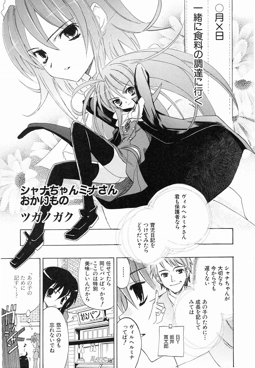 Shana-chan and Mina-san Go Shopping (シャナちゃんミナさんおかいもの Shana-chan Mina-san Okaimono) is an 8-page manga by Gaku Tsugano (ツガノガク).