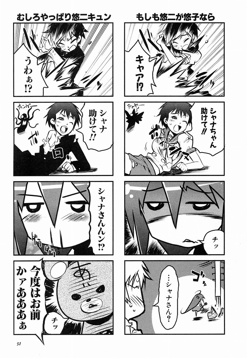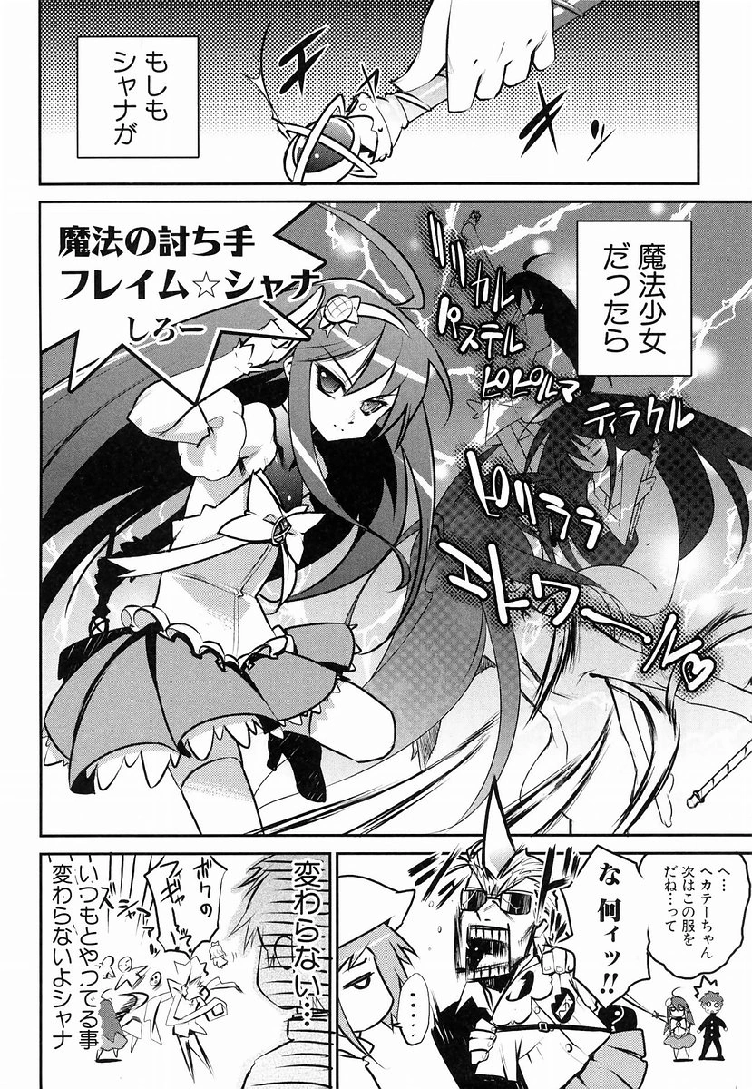 1. Magical Hunter Flame☆Shana (魔法の討ち手 フレイム☆シャナ Mahō no Uchite Fureimu☆Shana) is the first yonkoma.