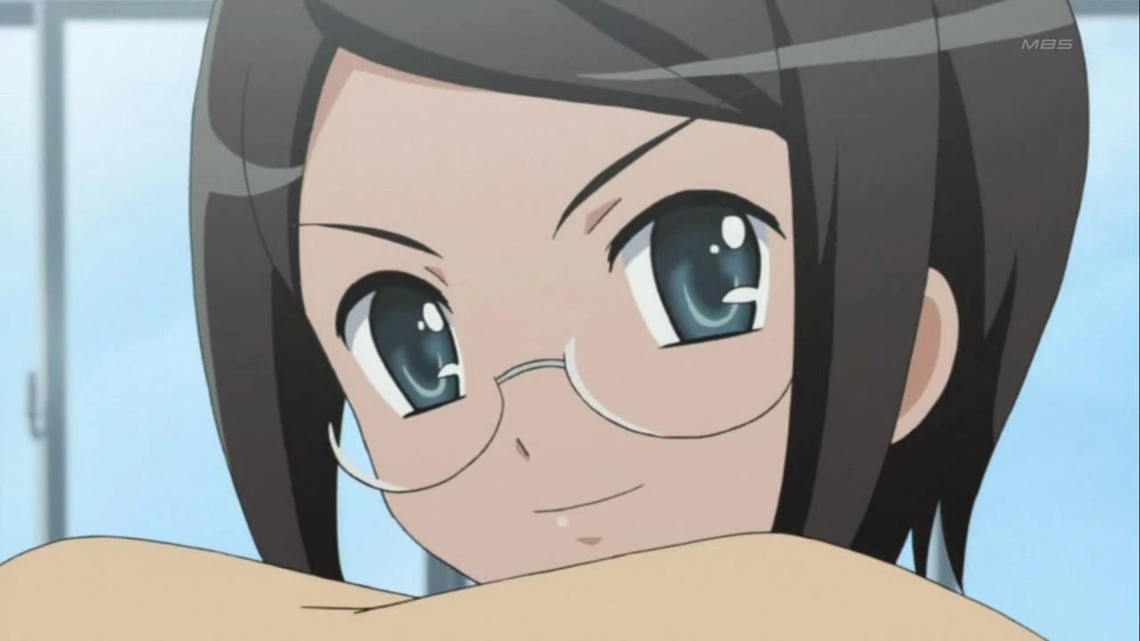Harumi has brown hair with blue eyes and wears a pair of spectacles.