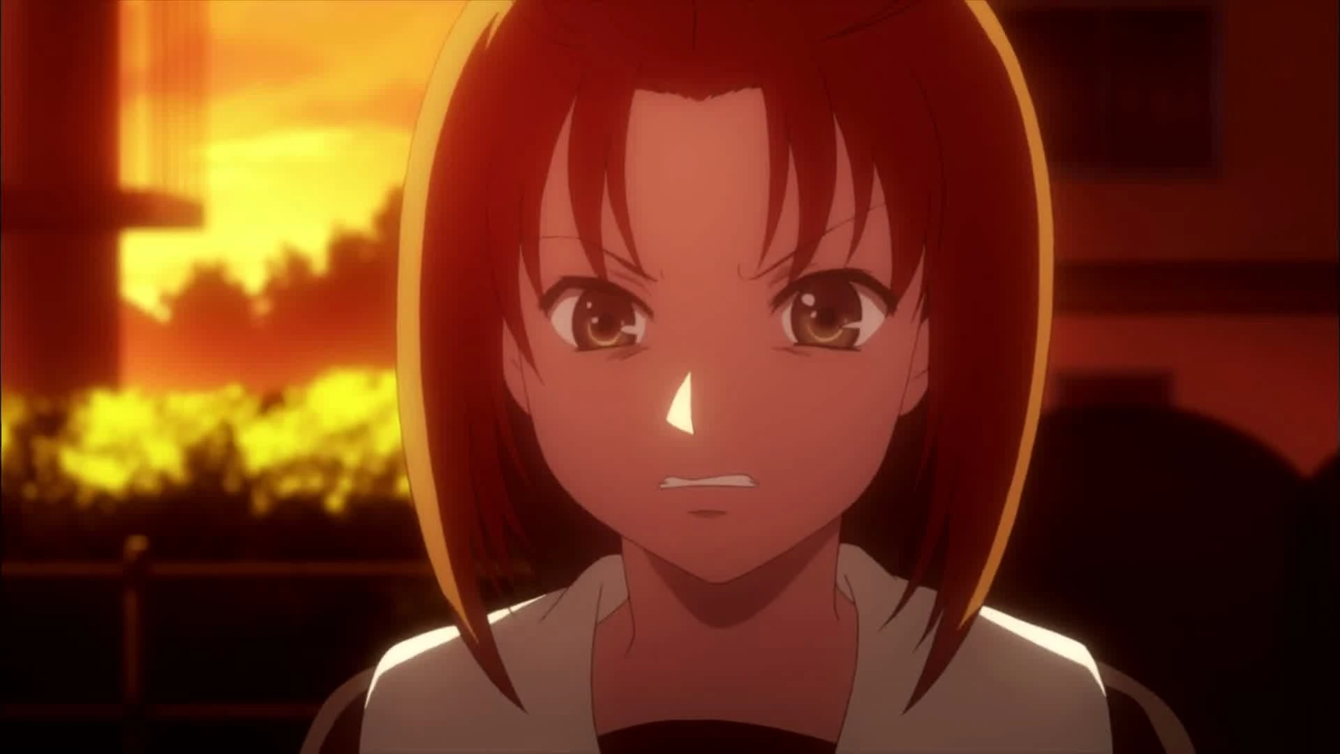 In the afternoon, Junko leaves a pastry shop after purchasing something. She stops at some steps to look at the view of the city. She leaves, thinking that she would take Hamaguchi with her to look at the view again. All of a sudden, a girl appears in front of her. She asks who the girl is and the reply was the Flame Haze of the Nietono no Shana. The girl approaches Junko, making her feel scared. The girl tells her that she is a Torch, a replacement for a departed soul's remnants. The girl reaches to Junko's chest. Junko asks for her mother before she is turned into a blue flame by the girl.[1]