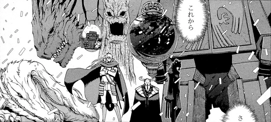Great Scout (大斥候 Daisekkō) | "Villainous World's Spawn" Jarri | "Strange Egg" (奇妙な卵 Kimyō na Tamago) |
