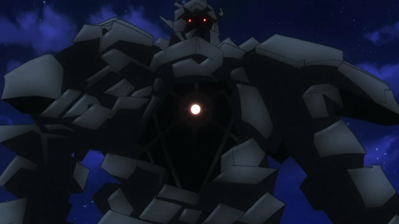 Rubble Giant (瓦礫の巨人 Gareki no Kyojin), formally known as Ceremonial Equipment (儀装 Gisō), is an Unrestricted Spell used by "Mobilizer of Ceremonial Equipment" Khamsin Nbh'w. Khamsin uses Rubble Giant for combat. It is created by several Unrestricted Spells, when Khamsin uses the energy flow of Qadesh's Blood Pulse to combine Qadesh's Blood Seal and Qadesh's Heart Chamber.
