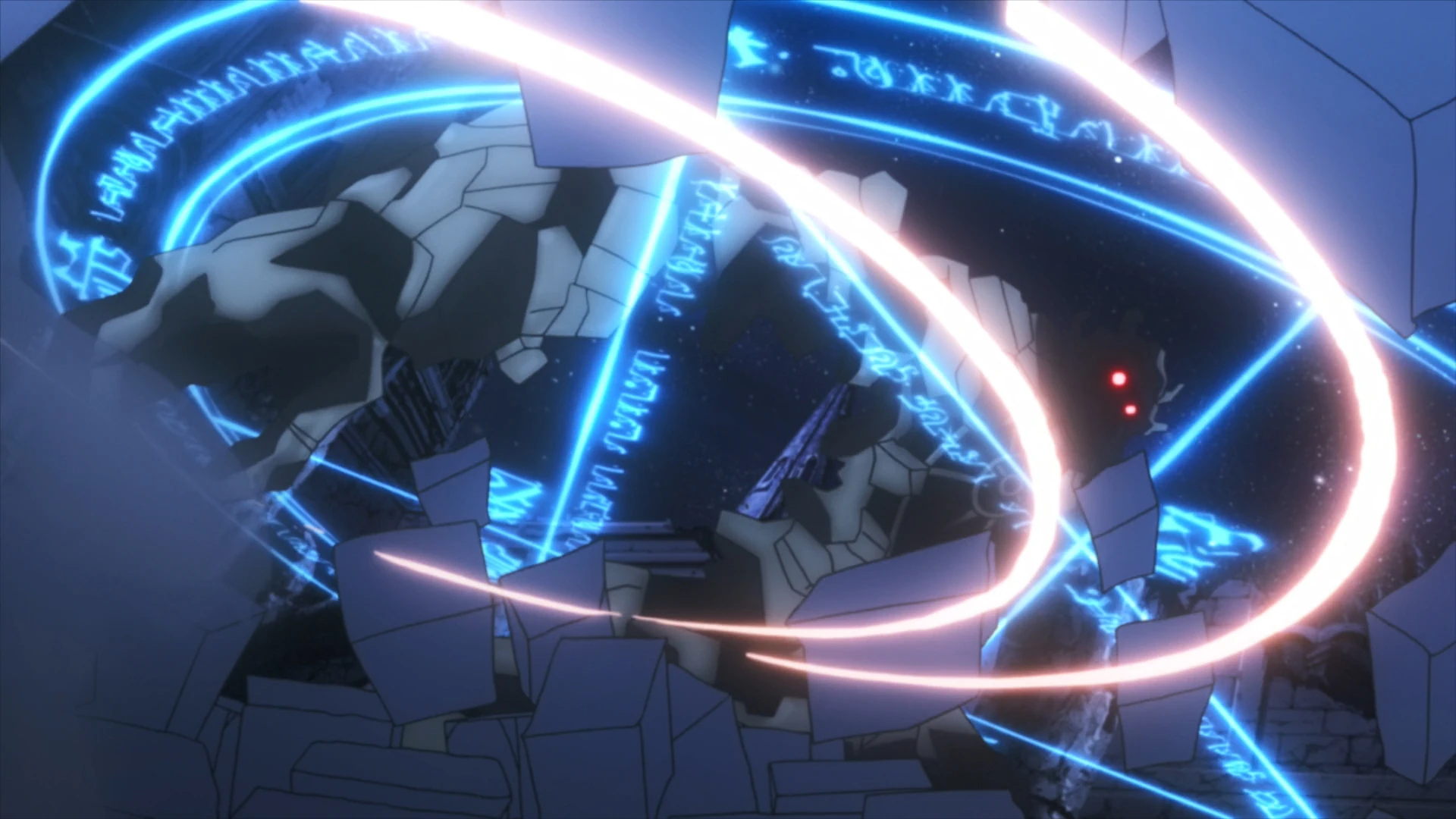By deploying the Unrestricted Spell Insignia Qadesh's Blood Seal on dozens of surrounding rubble, the Qadesh's Blood Pulse generated from those Insignia are connected to the tip of the handle of Mekest. Using it as an axis, the connected rubble are spun at high speed and then released. The extending threads of flame cause the dozens of rubble to scatter, creating a circular storm of brown flames that roll and bounce, crushing anything in its path.