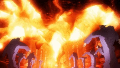 After she regained her power as a Flame Haze inside Seireiden, she had come to realize the symbol of "strength" as the "Flame-Haired Burning-Eyed Hunter" during following the fight with a Crimson Lord Vual. She became able to use this spell along with the others: Hien, Shinpan and Danzai.