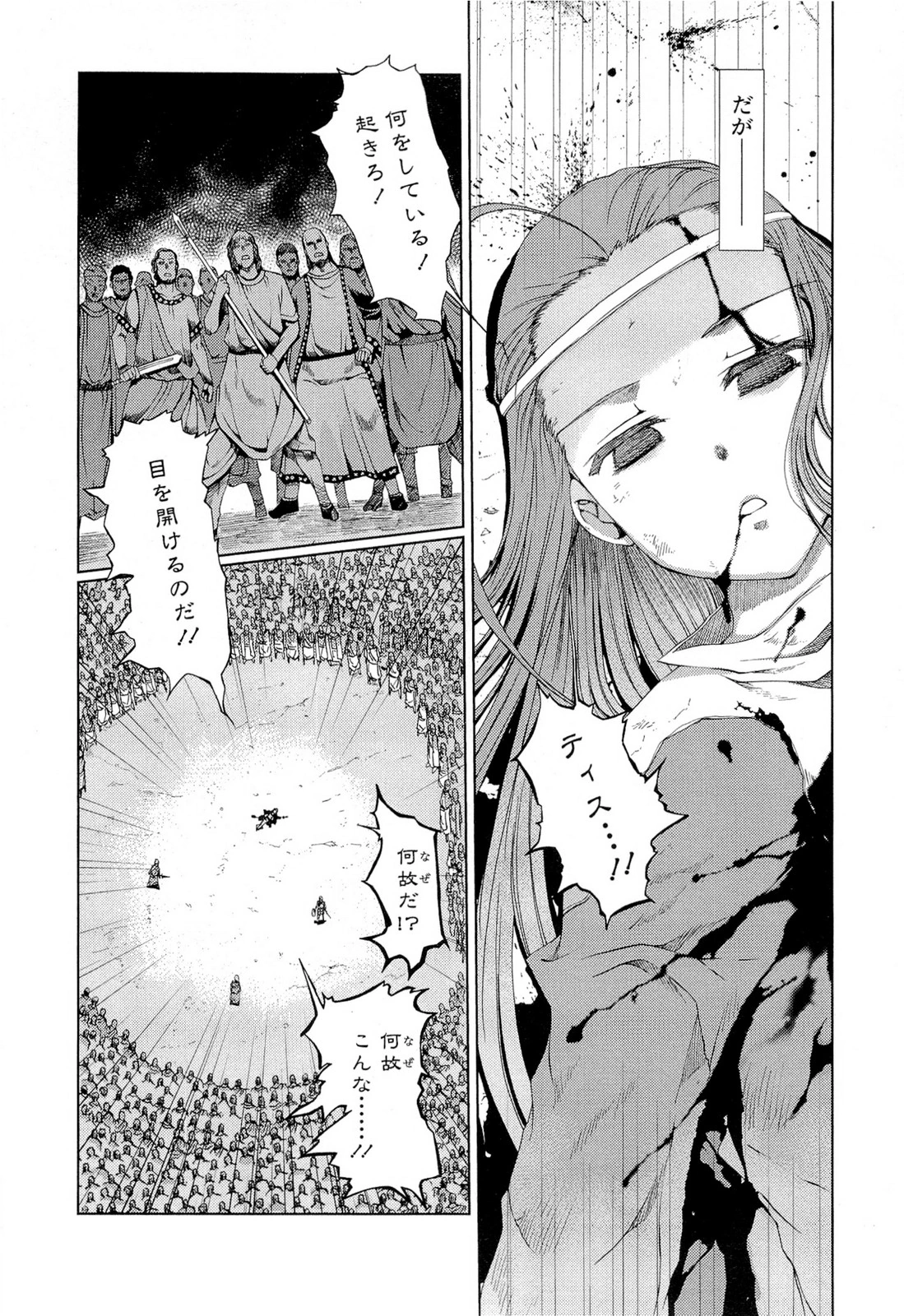 Eventually, after the battle with Denizens which left her very exhausted, Tis is betrayed and assassinated by humans she protects. Detesting humans for killing his beloved contractor, Asiz devours them and manifests himself into this world. He then starts searching for the way to revive Tis or, at least, fulfill her wish. As she is Asiz's sole motivation to engage his Grand Scheme (壮挙 Sōkyo), it leads to the formation of the first Flame Haze Army recruited from all over the world to stop his ambition. His plan is finally crushed down by Mathilde Saint-Omer, the Flame Haze of Alastor by summoning him into battle. Tis' body kept inside the Pure Coffin is destroyed by Alastor and Asiz is incinerated shortly after her, thus ending the Great War.